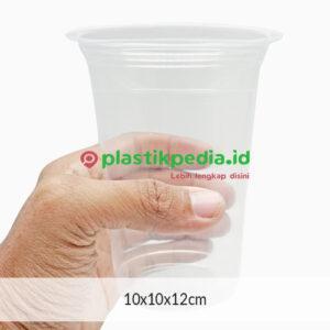 Gelas plastik warna transparan. Gelas cup plastik ini cocok digunakan untuk tempat minuman, juz, sup buah dll.