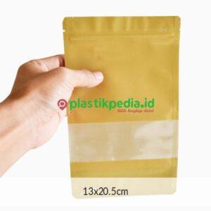 Standing Pouch Transmetz Window 1100Z Warna Putih. Ukuran 18x29cm. Kemasan berdiri, 1 sisi foil, 1 sisi plastik. Harga 1 lembar. 1 pak isi 100 lembar.